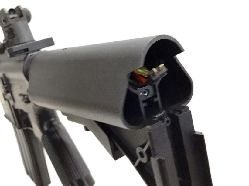 既存の電動ガン用アクセサリーパーツを取り付ける事も出来るメタル製レシーバー リアルサイズハンドガード採用で各社リアルサイズタイプの ハンドガードの取り付けが可能な上 バッファーパイプ内にバッテリーを収納するために 各スライドタイプストックの取り付けが可能。