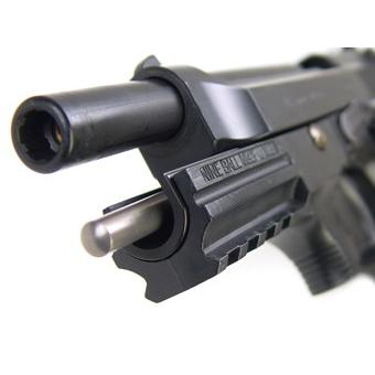 ハンドガンの場合は全体を金属性とする組み換え、エアソフトガンの場合は射出エネルギー0.98J以上にする改造を行うと銃刀法違反となります。HFC134a仕様のガスガンにCO2用マガジンを組み込む、スライドを金属製の物に差し替える等、簡易な改造でも罪に問われる可能性がございますので、絶対にお止めください。