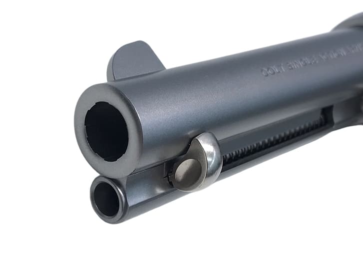 新機構の45LONG COLTカートリッジはダイカスト製のカートインナーを含む複数のパーツで構成され、外観のリアルさを損なうことなく、安定した命中精度を実現。