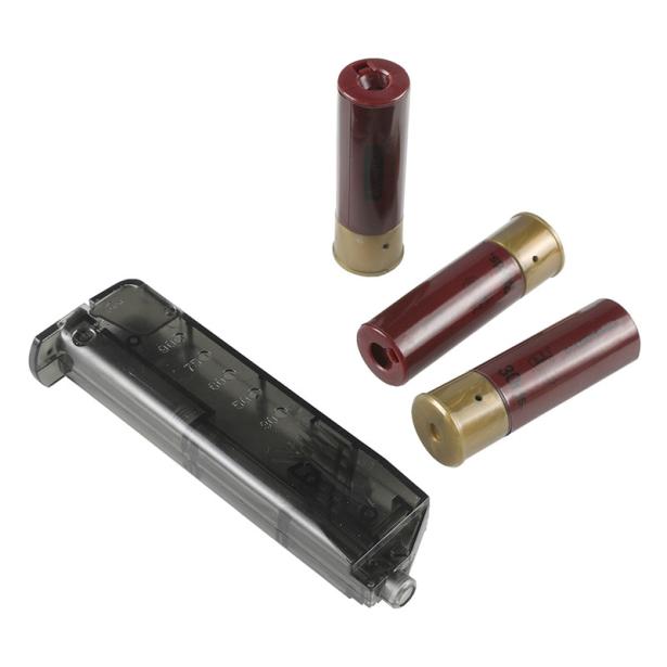 実銃のM870は、アメリカの銃器メーカー、レミントン・アームズ社によって製造されたポンプアクション式の散弾銃です。 1960年代に開発、製造されて以来、その安定した性能と信頼性、堅牢性が評価されております。そしてバリエーションの多様性により、狩猟としてだけではなく、近距離での対人制圧やドアブリーチング(扉破壊)などを目的として、世界中の法執行機関や特殊部隊に採用されております。 GE M870の特徴: ・リアルウッドとメタルボディ、実物の外観と雰囲気を再現 ・ラピッドファイヤー発射方式 ・3本インナーバレル仕様の高制圧能力 ・3発⇔6発切替可能な発射システム ・ショットシェル型マガジン ※リアルウッドモデルのガスタンクは取り外し不可の固定式です。 ※マルイ製ガスタンクとの互換性がありません。 ※マルイ製ショットシェルとの互換性があります。 基本仕様: ・材質:メタル/樹脂 ・全長:650mm ・重量:1935g ・装弾数:30発(ショットシェル×3本付属) ・発射モード:セフティー/3発・6発同時発射 ・パワーソース:134Aガス ・HOP調整:固定 ・使用BB弾:6mm ・適合基準:改正銃刀法規準適合(0.989J以下)