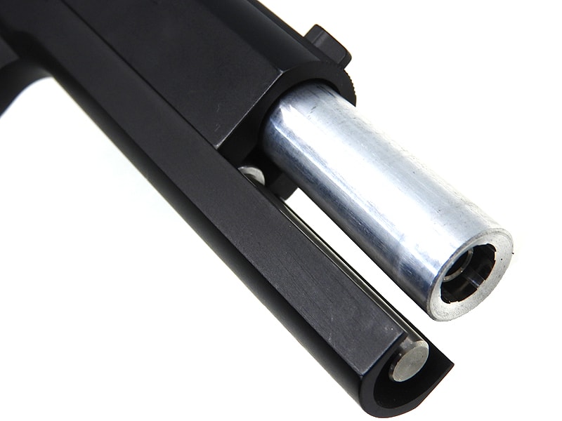ハンドガンの場合は全体を金属性とする組み換え、エアソフトガンの場合は射出エネルギー0.98J以上にする改造を行うと銃刀法違反となります。HFC134a仕様のガスガンにCO2用マガジンを組み込む、スライドを金属製の物に差し替える等、簡易な改造でも罪に問われる可能性がございますので、絶対にお止めください。