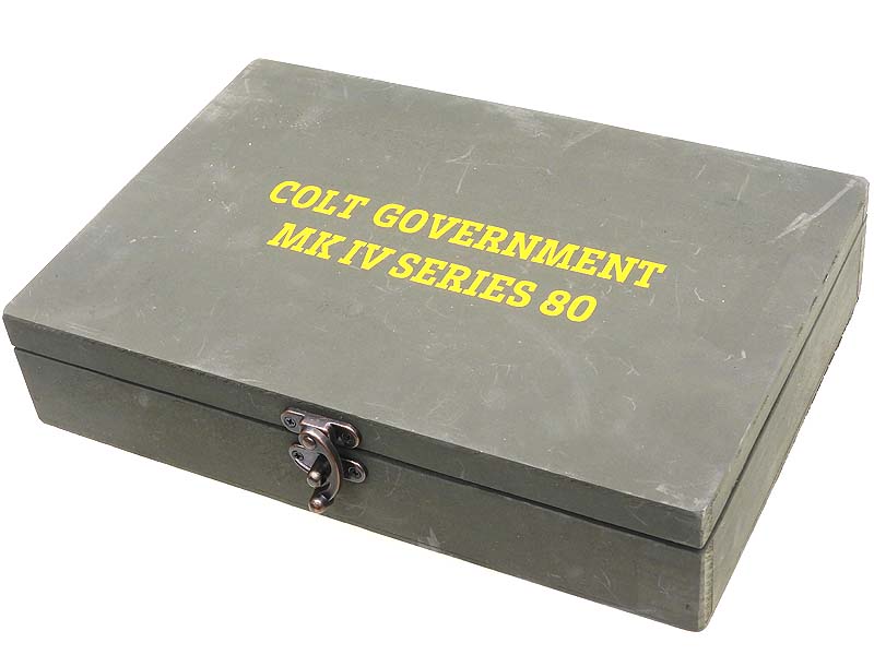 [WA] コルト MKIV シリーズ80 ガバメントモデル コマーシャル刻印 ABS ガスブローバック ブルーイングカスタム 木箱付き (中古) 詳細画像 オリジナル木箱つき。