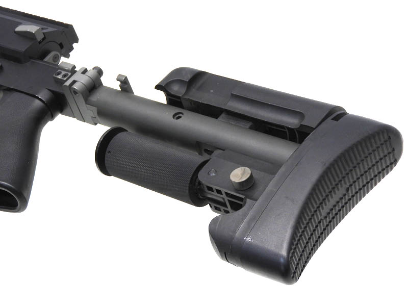フルメタルでリアルな質感でPGM Mini-Hecate.338を完璧に再現しているにとどまらず、ストックなども実銃同様に折り畳みや各部が調整が可能になっており、エアソフトとして外観の質感は高いです。