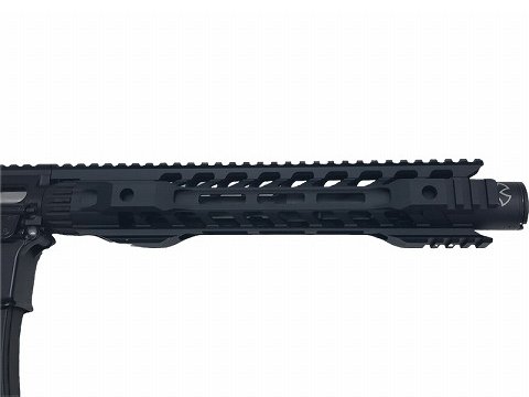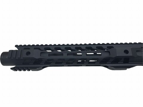 握り込みに適したハンドガードを備えている他、NOVESKEタイプのハイダーが装着されています。ストックパイプ内にバッテリーを収納可能。