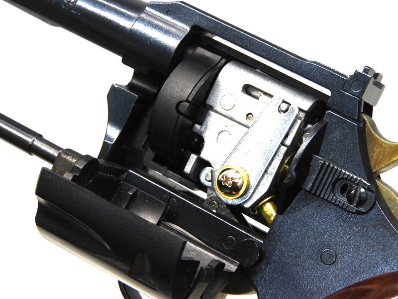 SF映画「ブレード・ランナー」に登場した『デッカード・ブラスター』のベースガンであり、知る人ぞ知るモデル。グリップの中にガスタンクがあり、弾倉は回転しない懐かしのレトロガン。弾倉のフタを開けるとメカが見えます。