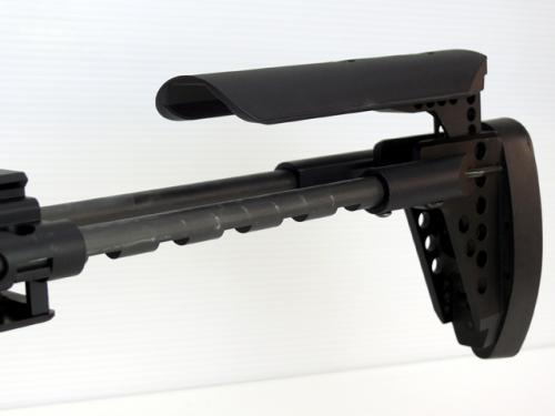M14 EBRをフルメタルでモデルアップ。EBRストックは実物同様伸縮、チークピース可動ギミックを再現し、セレクターも実銃同様、少し押し込みながら回す動作を再現している。4.5キロと重量感もあり、メタルパーツを多様に使っているので質実剛健。