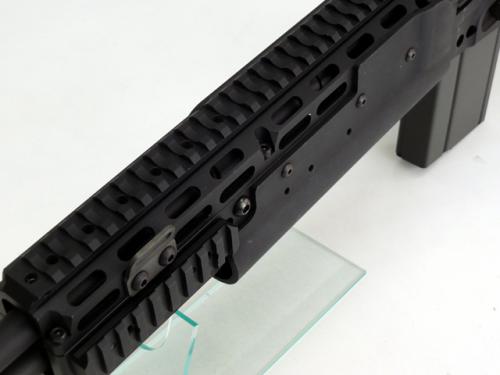 都合上GR14となているが、M14EBRがモデルであることには間違いない。6段階で調節可能なストックや、多面レールや7段階の調整ができるチークピースなど戦闘力の高い仕上がり。またバッテリーはハンドガード内に収納できる。装着にはサイドのスクリューを6本取り外す必要があるが、がっちり固定されるのでハードに動き回るにはこちらが利点があるかもしれない。