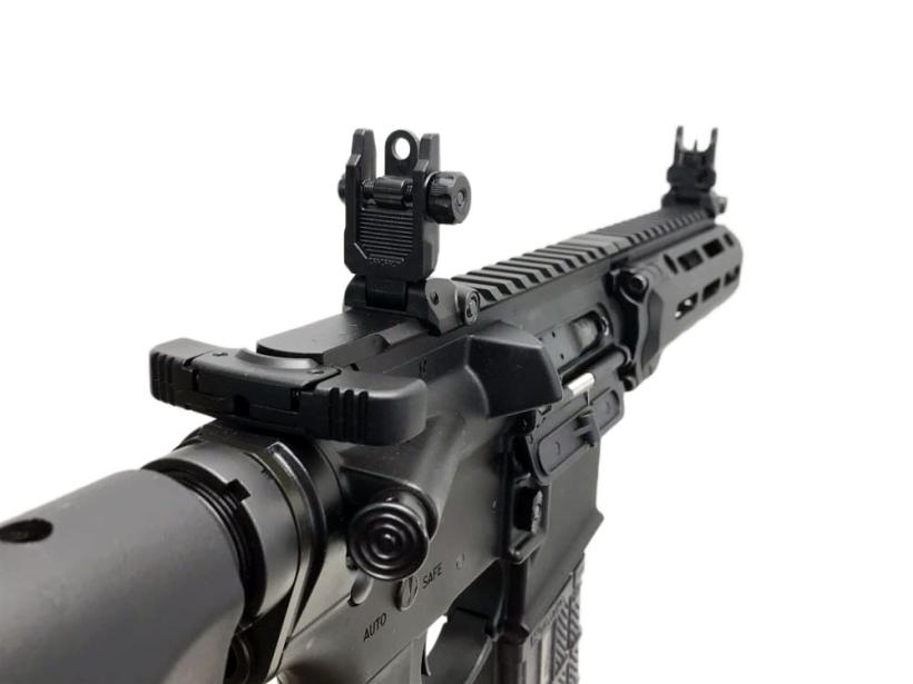 ごく短い7インチバレルに、6インチのMFR XLフラットフロントハンドガードや、DD LINEAR コンペンセイターを備え、短いバレルでも十分な威力を発揮する.300BLK弾を用いる様設計されており、やや高級な価格設定がネックながらも、時代に合わせたコンセプトで、信頼性・射撃性能ともに高い評価を得ている一艇。