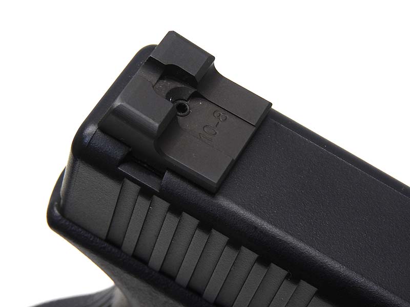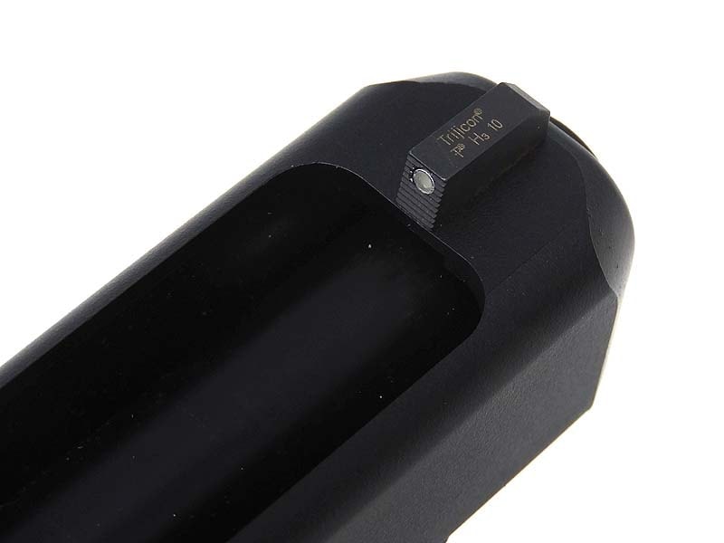 一切の無駄をそぎ落としたストイックなスタイルや、各パーツ形状、トリガーのセフティ・ギミックの再現はもちろん、競技射撃においてより精密に狙い撃つために延長したバレル&スライド長、そして上下左右位置の微調整が可能なリアサイトは、エアソフトガンでの射撃においても効果を発揮します。