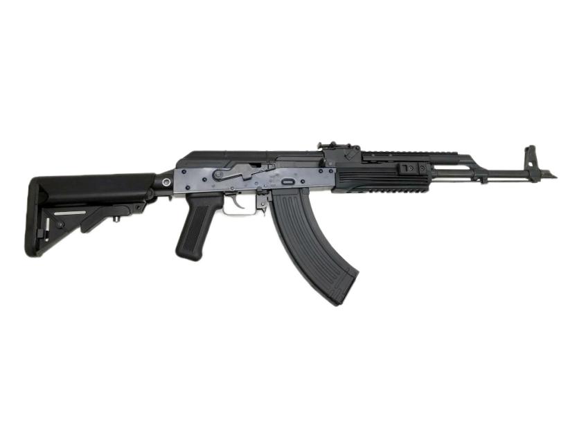 We-TechよりAKMがベースのPMCカスタムが登場。伸縮ストック、フロントレイルを装備したタクティカルなAKはPMCが現地で使用する西側のAKをイメージしたモデルです。