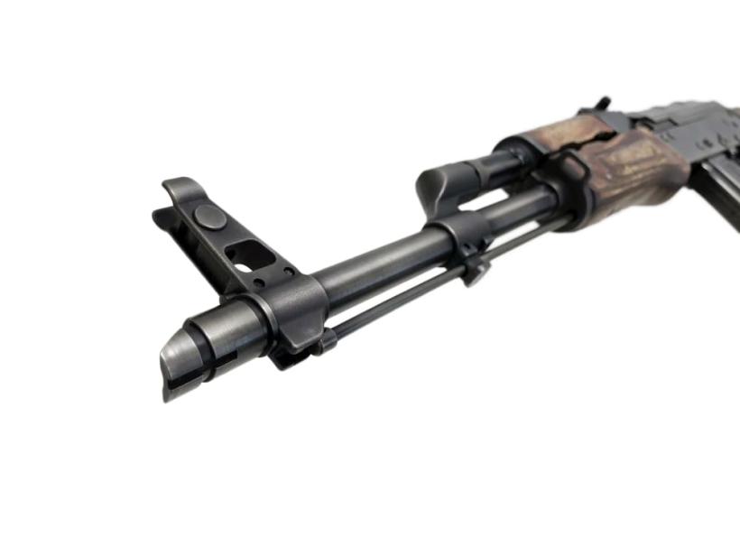 AKMとは、「Avtomat Kalashnikova Modernizirovanniy;Автомат Калашникова Модернизированный(改良型カラシニコフ式突撃銃)」の略であり、マズル先端が斜めに切断されているように見えるのが最大の特徴である。これは発射ガスを上方に吹き上げて銃口の跳ね上がりを抑える、コンペンセイターの役目を果たす。
