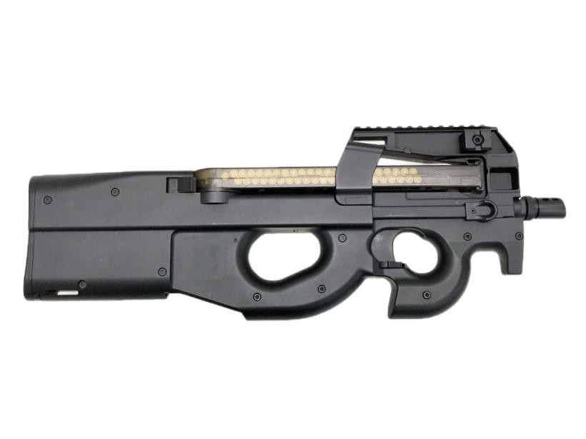 P90はプラスチックを多用したブルパップ形状で、銃下面に排莢口を設けることで射手の利き手を選ばず左右臨機応変に構えることを可能にしている。