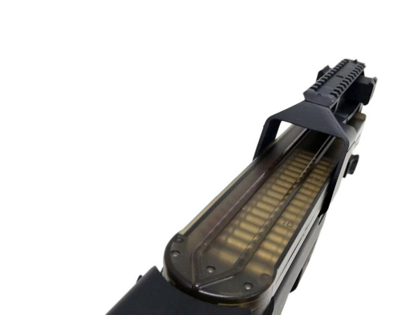またマガジンは50発というハイキャパシティながらレシーバー上部に銃身と平行に配することで本体から大きく張り出すことなくコンパクトにまとめられている。
