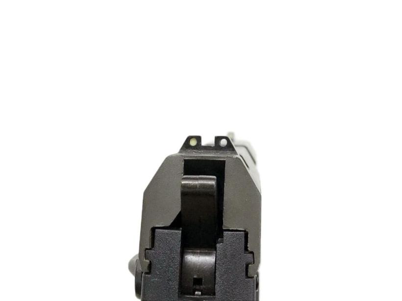 [タナカ] H&K P8 ABS ガスブローバック サイトインサート欠品 (中古) 製品詳細画像5 リアサイト右の白い点を構成するパーツがなく、空洞になっている。