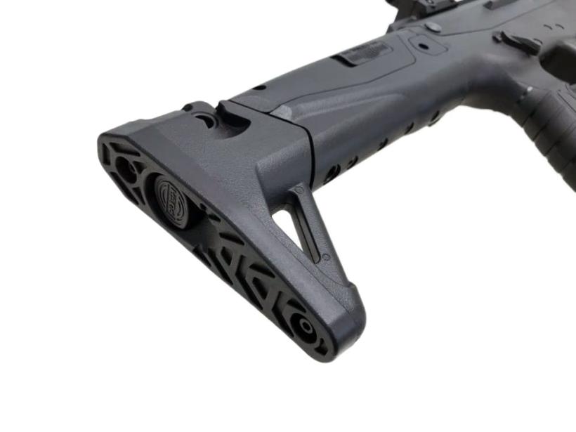 ストックはチークピースの高さが調整可能となっており、折り畳みと長さ調整も可能。