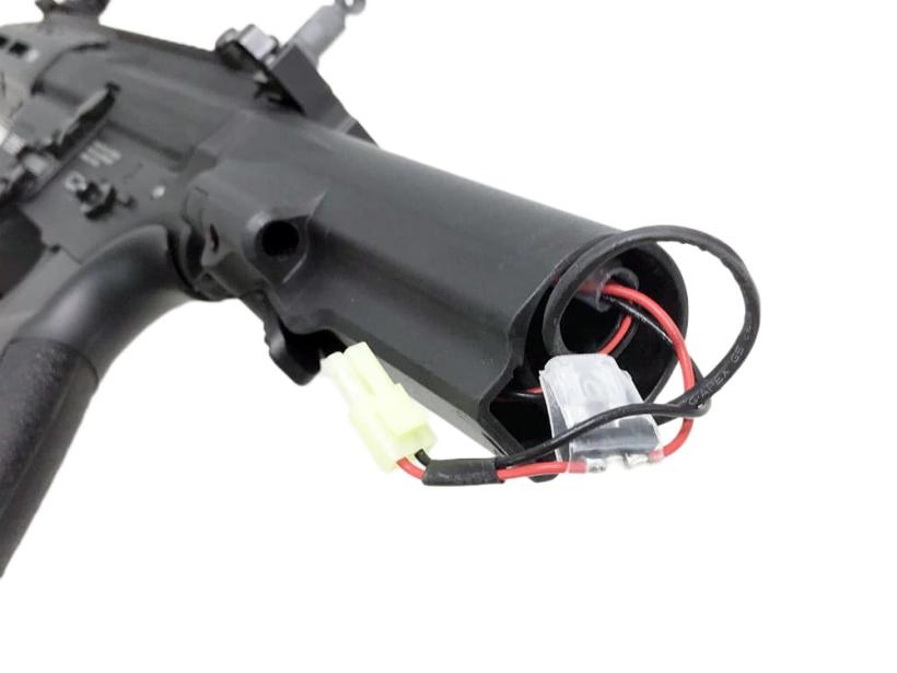 バッテリーはストック内収納。小型のリポバッテリーをご利用ください。7.4vリポバッテリーもしくはG&G対応11.1vバッテリー推奨品。