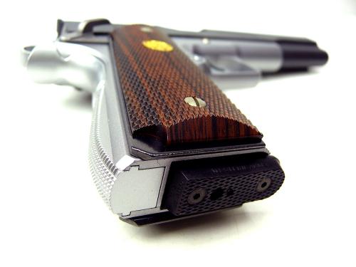 [WA] ホーグN.M ロングスライド フレームシルバー (中古) 製品詳細画像3 「アドバンスド・グリップ・システム」と呼ばれる、フレームとグリップパネルの間の金属板もこの通り再現。
