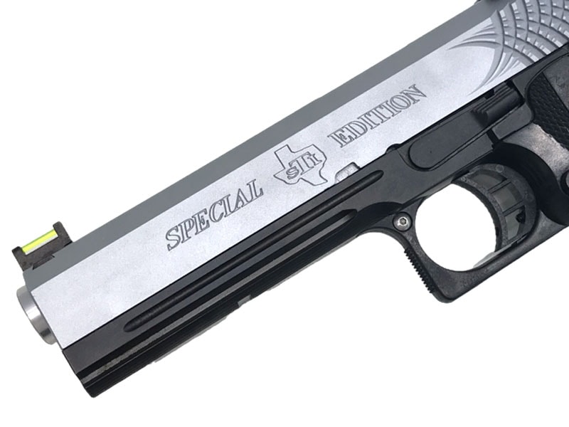このカスタムはSTI社のプレゼンテーション・モデルの意味合いが強く、有名な競技会(IPSC)の記念モデルとしても同形機がリリースされている。独創的なセレーション・スタイルと新型レイルという仕様に、多角形断面のスライド(TRI-TOP)を導入。サイトシステムはファイバー&ゴーストリング型といった、通常モデルとは徹底した差別化が施されたデラックスバージョン。