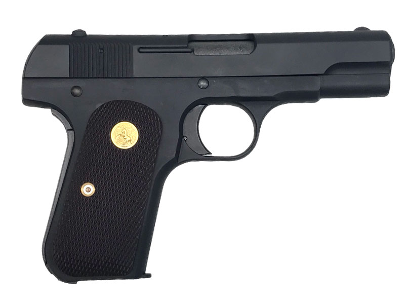 "コルト M1903"、一般的には"コルト .32 オート"と呼ばれるが、正式にはこう呼ぶ。"コルト M1903"はアメリカ版"ブローニング M1903"とも言えるモデルであり、内蔵型のハンマーやマニュアル・セフティの機能、グリップセフティ等、機構的には殆ど同じであるが、口径とデザインが違うのがその特徴である。後に、"ブローニング M1903"と同じ口径の「コルト M1908」も登場する。そのシンプルな構造から作動の信頼性が高く、小型・軽量であった事から、数多くの軍や警察機構で使用され、日本でも大日本帝国陸軍の将校たちの間では「ブローニング M1910」に継ぐ人気の高さだったと言われている。また、昭和30年代の日活の無国籍映画で多用された事から、"コルトM1903"は"日活コルト"としても呼ばれているが、この"日活コルト"は引き金以外は稼動しない電気着火式、モナカ構造のステージ・ガンである。