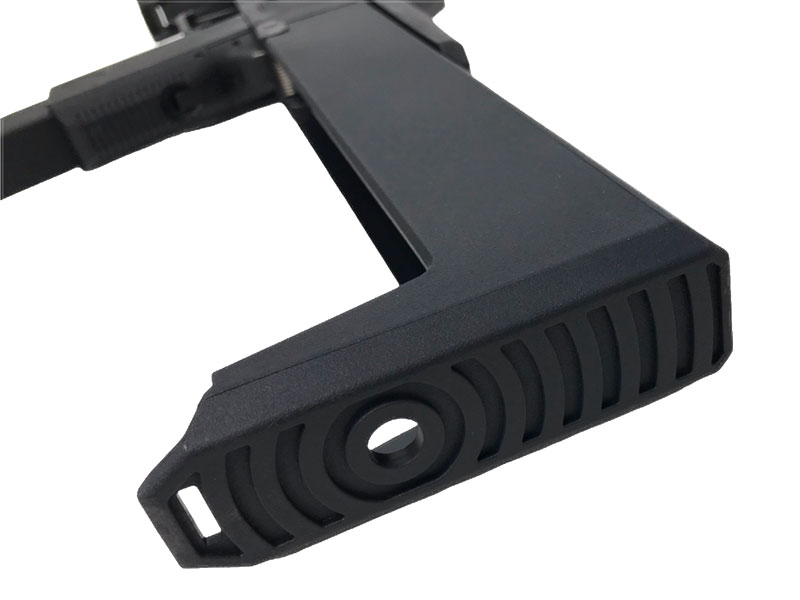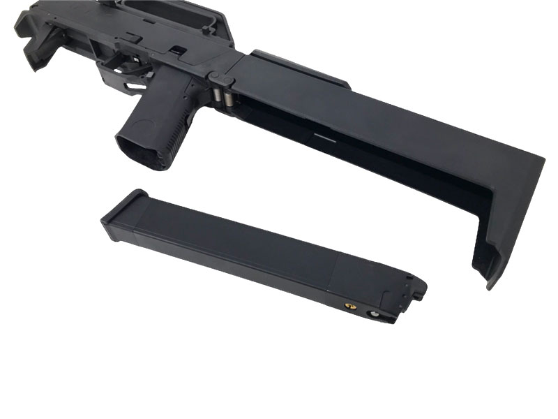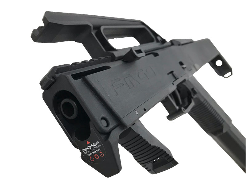 展開用ヒンジ部分にスチール製スリングループ、45連ガスマガジンを標準装備した