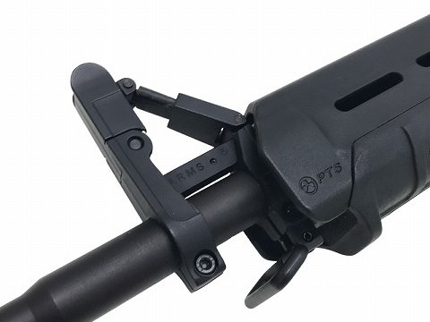 折りたたみ式フロントサイト(フォールディングサイト)にカスタム済み(ノーマルフロントサイト有り)。マグプルMOEタイプショートグリップ付属。