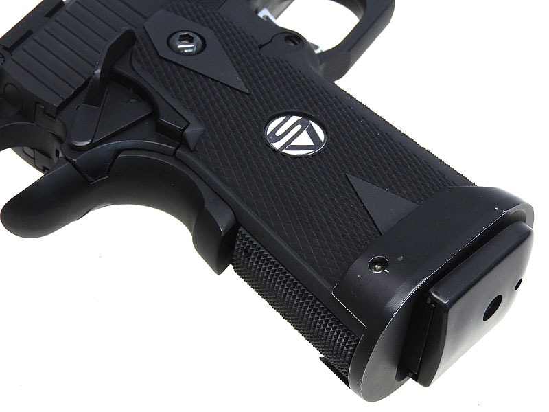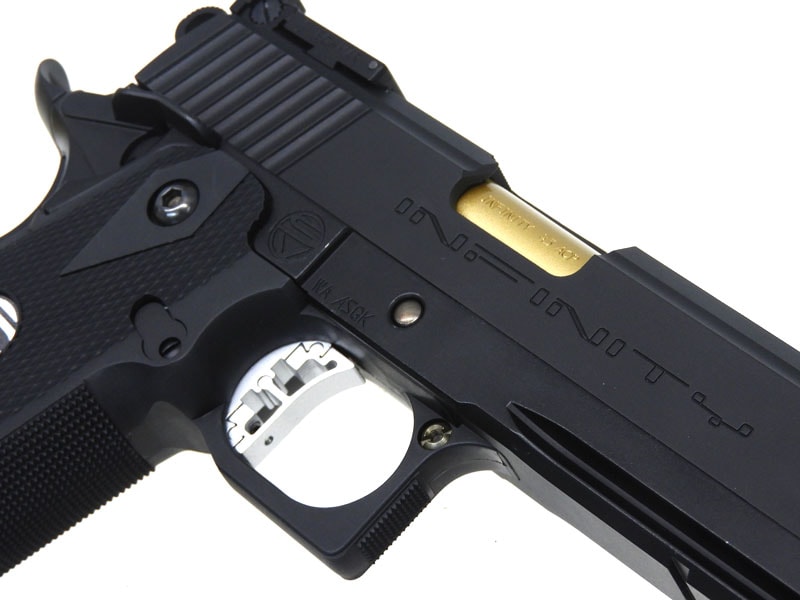 ハンドガンの場合は全体を金属性とする組み換え、エアソフトガンの場合は射出エネルギー0.98J以上にする改造を行うと銃刀法違反となります。HFC134a仕様のガスガンにCO2用マガジンを組み込む、スライドを金属製の物に差し替える等、簡易な改造でも罪に問われる可能性がございますので、絶対にお止めください。