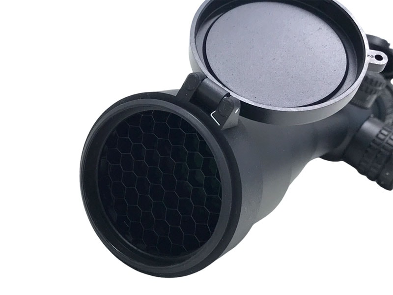 ・センタードット照明付きエッチェドグラスレティクル、ハニカムサンシェード、フリップアップキャップ付き