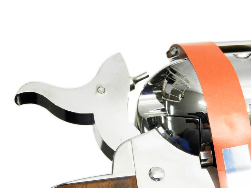 100挺限定で生産された通称 シビリアン 4.75インチ。ABSの材質に拘り、ヒケの抑制まで追求したニッケルメッキモデル。さらにTOP MODELとしてバレルウェイトの挿入、刻印の再現、パーティングラインの処理工程が追加されている。