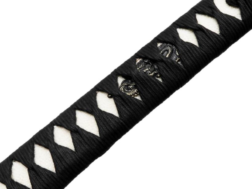 刀身のグラつきや柄巻のズレなどいっさ感じない本格仕様であり、柄巻は捻り巻で巻かれておりギッチリしていて安心ではあるが鯉口が若干ゆるくなってしまっているのが難点ですが訳ありとはしていません。