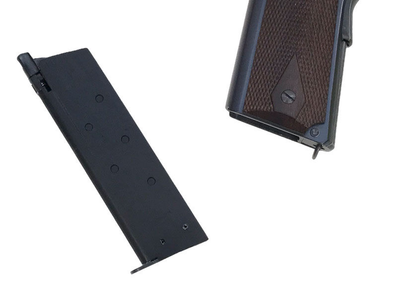 「A1」ではない1911。M1911A1と違うのはトリガー後方のリーフカットが無く、ストレートのハウジングでありトリガーもロングになっている。