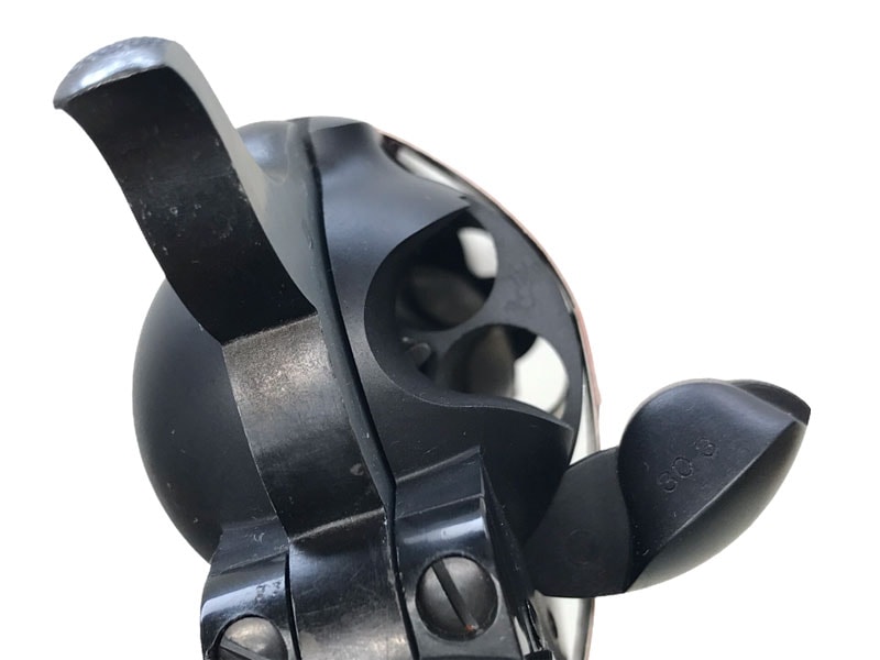 ブラスト仕上げとなるフレームのマットな質感と、バフ仕上げによるバレル・シリンダー部の光沢とのコントラストが際立つ。