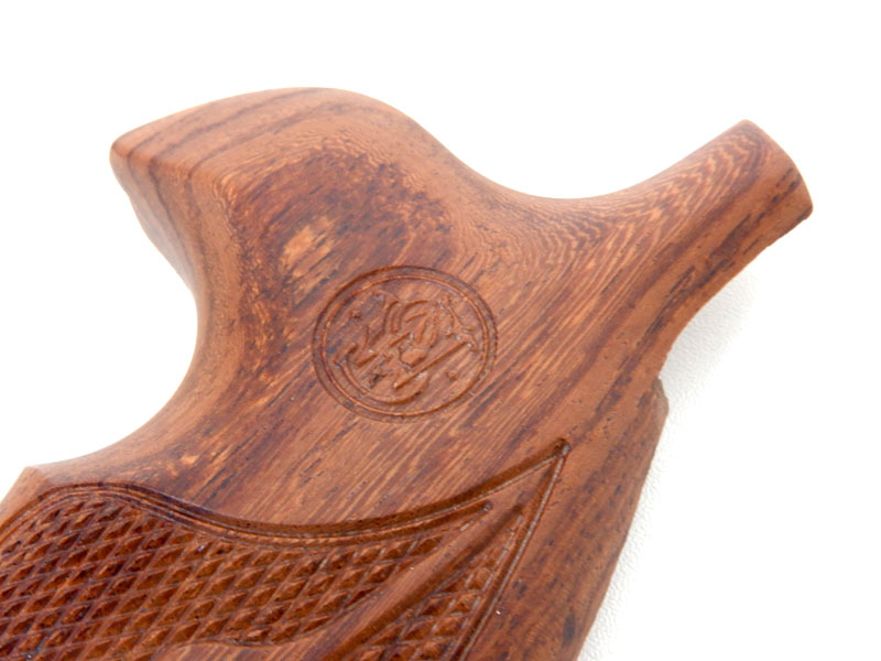 [メーカー不明] S&W刻印入り Kフレーム ラウンドバット用 ハーフチェッカー木製グリップ (中古) 製品詳細画像1