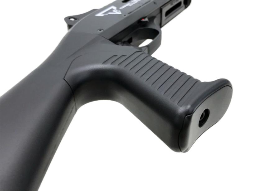 速射力を重視するセミオートと通常のポンプアクションとを切り換えるシステムを備えているのが最大の特徴。