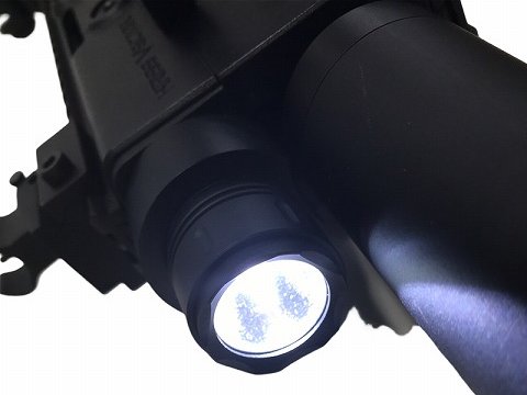 [KWA] クリスベクター KRISS VECTOR ブラック ガスブローバックSMG LEDライト_16インチ バレルシュラウド カスタム (中古) 製品詳細画像7 ライトは明るく、リモートスイッチを押している間光ります。