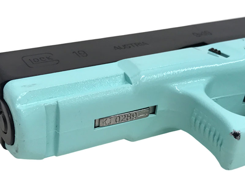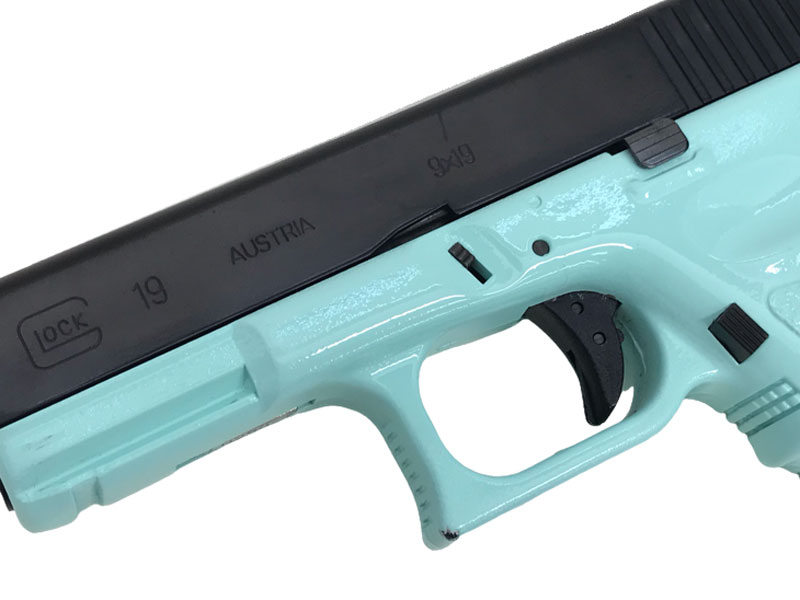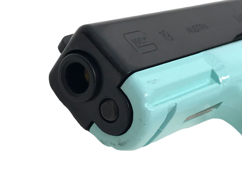Tiffany & Co. のブランドカラー「ティファニーブルー」をグロック19のフレームに塗布したカスタムモデル。