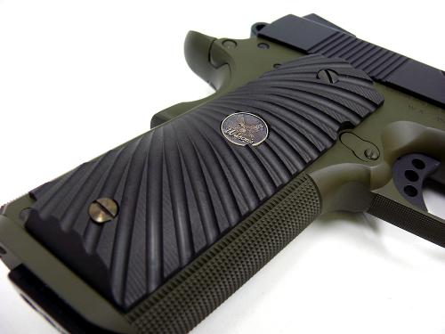 現在(2012年)でもウイルソンコンバット社ラインナップの最前線で活躍する無敵の2トーンモデル、"CQB"。ウイルソンCQBモデルといえば、今日隆盛を極めるファクトリー系1911の先駆け。ファクトリー出荷段階で高性能なタクティカル.45。スターバーストグリップを採用したNEWバージョン。