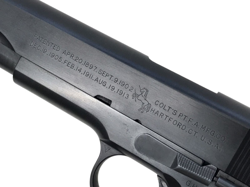 「大口径主義のアメリカ」の象徴とも云えるシングルアクション自動拳銃、 ガバメントの最初期モデルであるM1911。19世紀末の米比戦争で、当時採用していた.38口径弾(.38ロングコルト)の威力不足を痛感したアメリカ陸軍は、よりストッピングパワーの高い拳銃を模索するようになる。コルト社はこれに応え、ブローニング設計のM1900を原形とした大口径自動拳銃と、これに合わせて.45ロングコルト弾を自動拳銃用にブローニングが改修した.45ACP弾を用意した。
