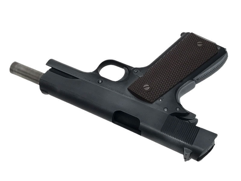 1911年、陸軍はこの新型拳銃を『M1911』の名前で採用。1926年には細かな改修を加えられた『M1911A1』に発展した。その名の通り1911年に米軍に正式採用され、第1次大戦における実戦使用で得られた教訓から各部に小改良が施されました。この改良型M1911は1920年代後半に『M1911A1』として再度制式化されました。
