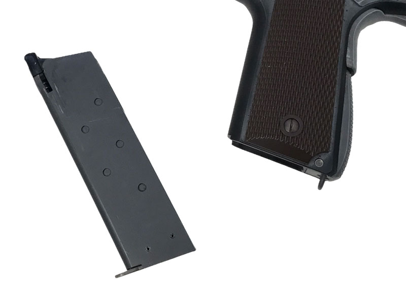 ハンドガンの場合は全体を金属性とする組み換え、エアソフトガンの場合は射出エネルギー0.98J以上にする改造を行うと銃刀法違反となります。HFC134a仕様のガスガンにCO2用マガジンを組み込む、スライドを金属製の物に差し替える等、簡易な改造でも罪に問われる可能性がございますので、絶対にお止めください。