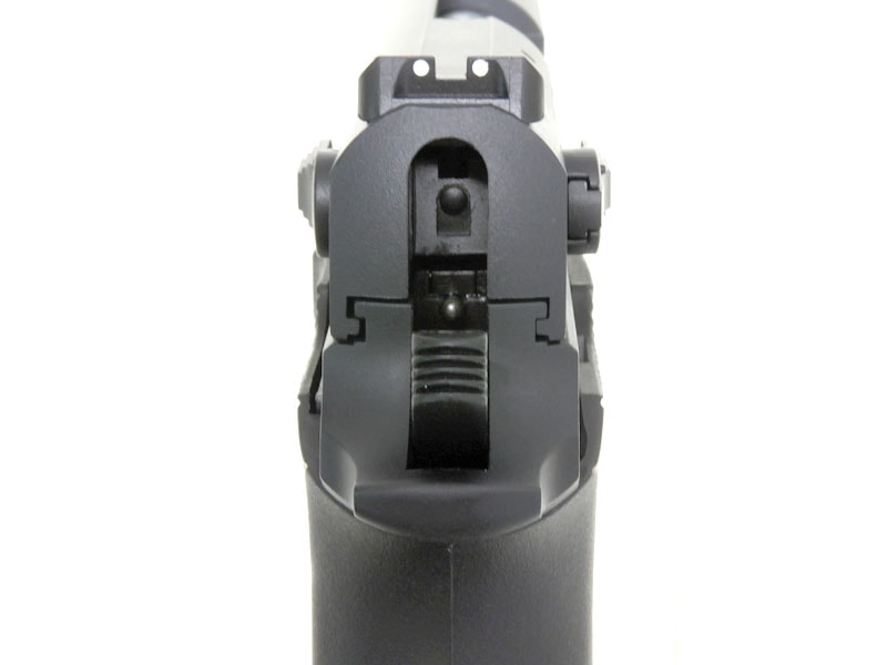 焼付塗装仕上によってブラックアウトされたスライドとフレームを採用しています。
