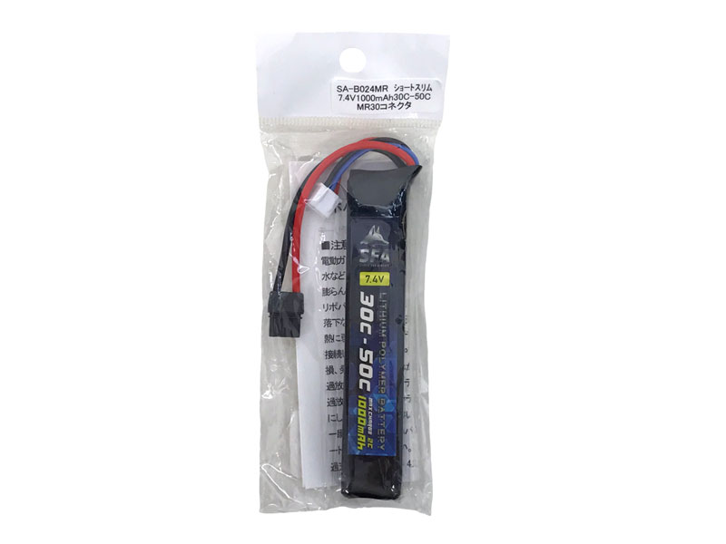 [SFA] LiPoバッテリー 7.4V 1000mAh 30C-50C スティックタイプ MR30コネクタ SA-B024MR (新品)の販売ページ|エアガン.jp