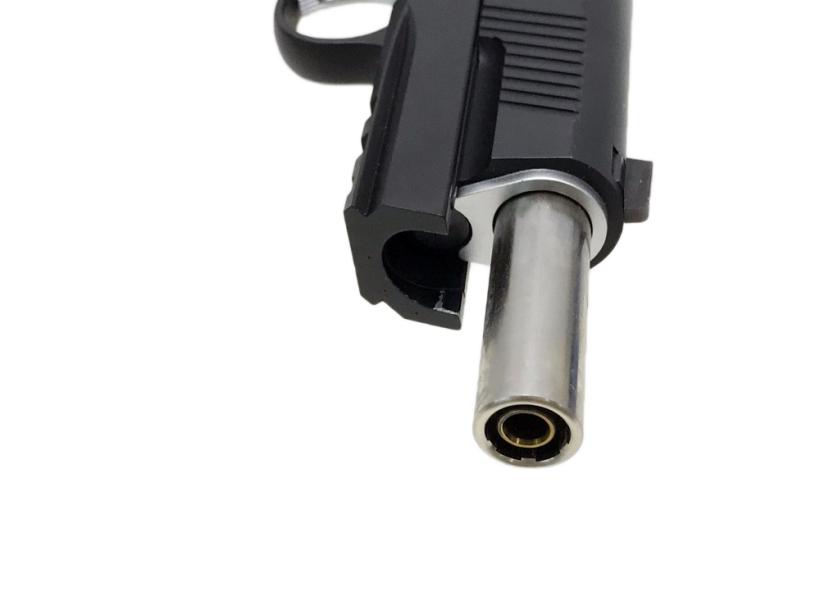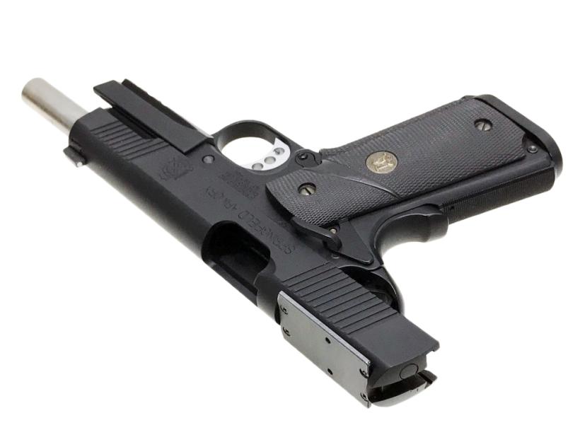 ハンドガンの場合は全体を金属性とする組み換え、エアソフトガンの場合は射出エネルギー0.98J以上にする改造を行うと銃刀法違反となります。HFC134a仕様のガスガンにCO2用マガジンを組み込む、スライドを金属製の物に差し替える等、簡易な改造でも罪に問われる可能性がございますので、絶対にお止めください。