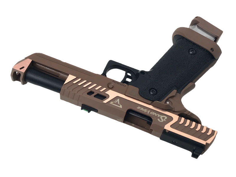 映画「John Wick」でも人気となった「PIT VIPER」の姉妹機「SAND VIPER」をCO2ガスガンとしてモデルアップ。季節を問わない俊敏なCO2ブローバックならではの迫力あるリコイルと安定した弾道を併せ持ったハイレベルな一品。