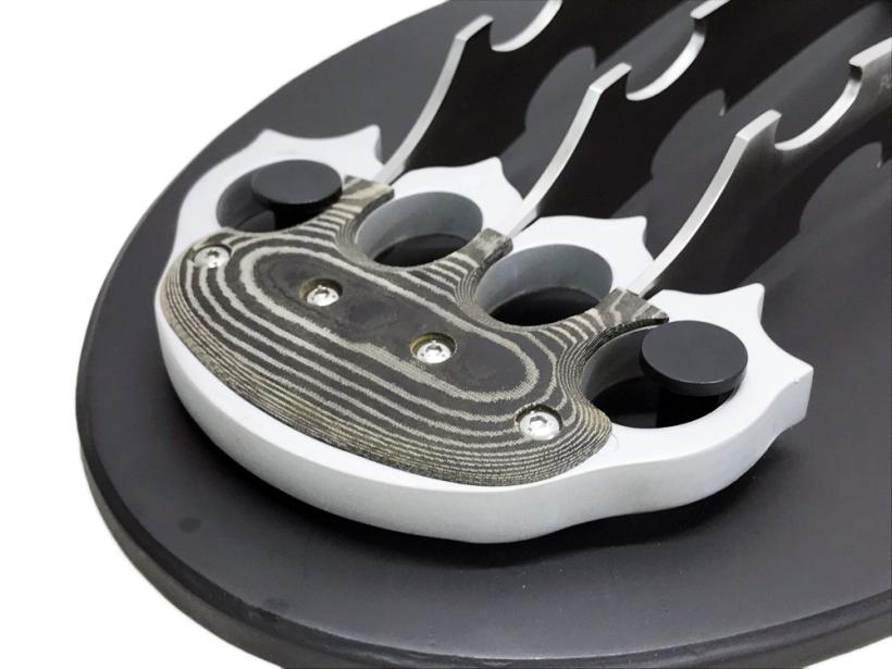 迫力全振りの3本爪型のナイフ。手持ち部分を握り込んで保持すると、さながらヴィラン。