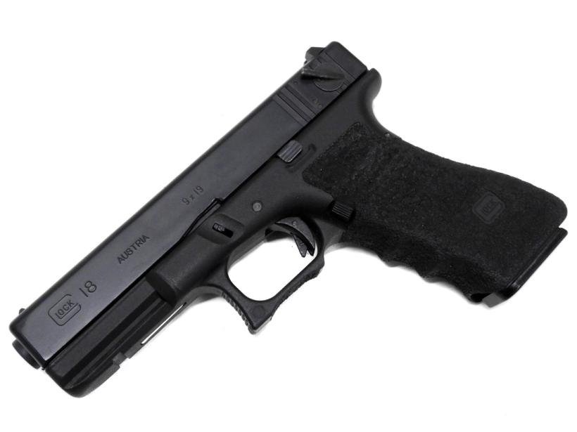 ポリマーフレームで有名なグロックシリーズのうち、フルオート射撃可能なのがグロック18。旧モデルよりさらに安定したブローバックを実現した「エボリューション」として登場。