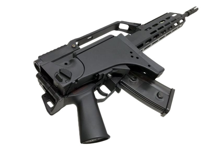 独ヘッケラー&コッホ社が開発したアサルトライフル。H&K G3の後継としてより高い機能性・軽量さを重視して「シンプルかつ信頼性の高い突撃銃」をコンセプトに開発された。作動方式はショートストロークピストン式で、フレームには繊維強化プラスチックが多用されている。弾倉は半透明で残弾数が確認できるようになっており、マガジン自体に突起を設けて連結できるようになっている。現在はドイツ以外にも欧米の軍や法執行機関で採用が進んでいる。