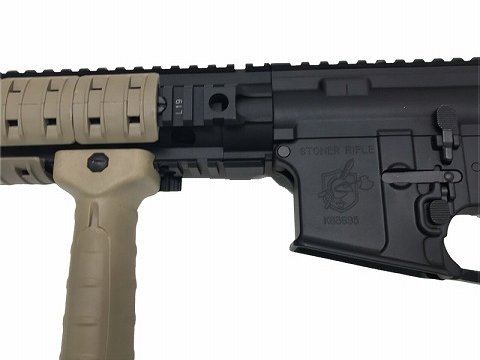 ナイツアーマメント社の正式ライセンス商品。民間向けのセミオートオンリーのモデルがSR-15。実銃と違い、フルオートでの射撃も可能なセレクティブファイア仕様。