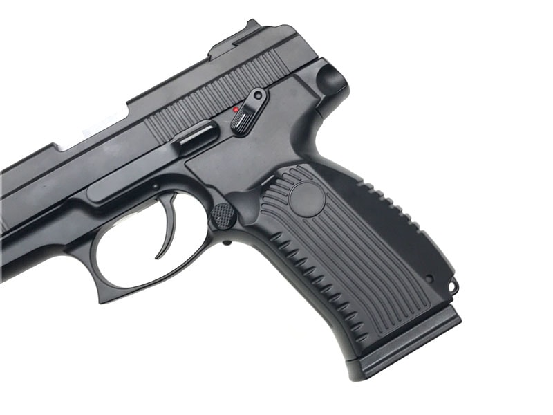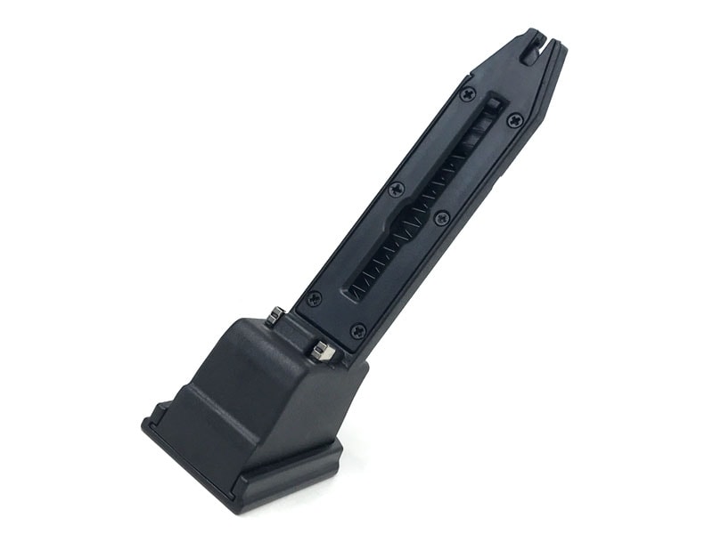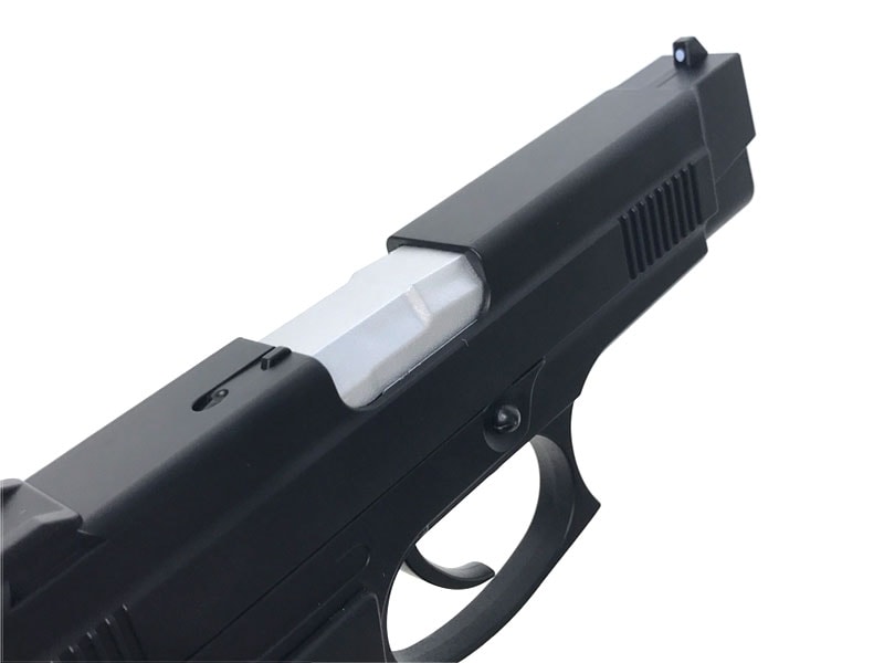 ハンドガンの場合は全体を金属性とする組み換え、エアソフトガンの場合は射出エネルギー0.98J以上にする改造を行うと銃刀法違反となります。HFC134a仕様のガスガンにCO2用マガジンを組み込む、スライドを金属製の物に差し替える等、簡易な改造でも罪に問われる可能性がございますので、絶対にお止めください。