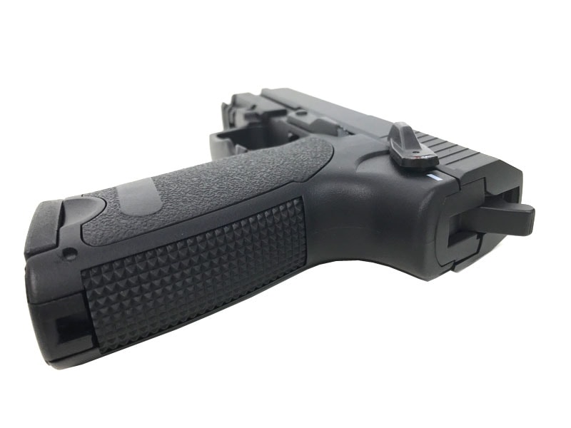 ハンドガンの場合は全体を金属性とする組み換え、エアソフトガンの場合は射出エネルギー0.98J以上にする改造を行うと銃刀法違反となります。HFC134a仕様のガスガンにCO2用マガジンを組み込む、スライドを金属製の物に差し替える等、簡易な改造でも罪に問われる可能性がございますので、絶対にお止めください。