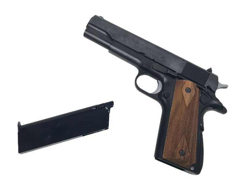 [WA] コルトガバメント MKIVシリーズ70 カーボンブラック ガスブローバック 木製グリップカスタム (中古)の販売ページ|エアガン.jp